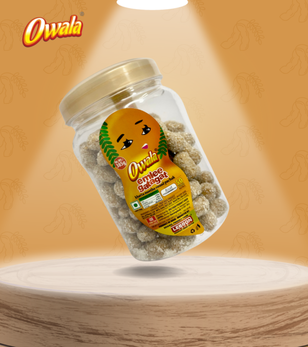 Introducing Owala Emlee Gatagat, a jar packed with 120 smaller-sized, tangy-sweet candies, perfect for an instant burst of flavor!   With a total weight of 385 grams, Owala Emlee Gatagat is made from high-quality, 100% vegetarian and organic ingredients, delivering a delightful Khatta Meetha (sweet and tangy) taste.